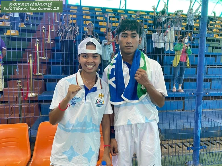 មិនសរសើរមិនបានចូលរួមអបអរសាទរកម្ពុជាយេីងបានឈ្នះមេដាយមាសទៀតហើយ ស៊ីហ្គេម២០២៣៖ កម្ពុជាបានឈ្នះមេដាយមាស ១គ្រឿង និង ប្រាក់ ១គ្រឿងលេីវិញ្ញាសាកីឡា Soft Tennis វិញ្ញាសារវាយគូ បុរស នារី